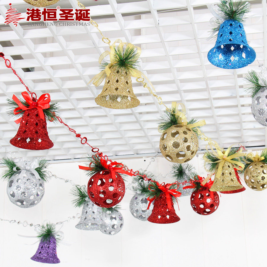 【Name】 Hong Kong Hang Hang Christmas ornaments 200cm bell bell-shaped hanging string suspended ceiling Christmas bell string ball string【Weight】 0.45kg (kg)【Material】 PVC【Size】 200cm
