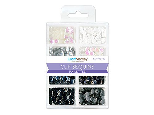 Craft Medley GC457A Cup Sequins, 7mm, 16g , 8 Colors, Black and White