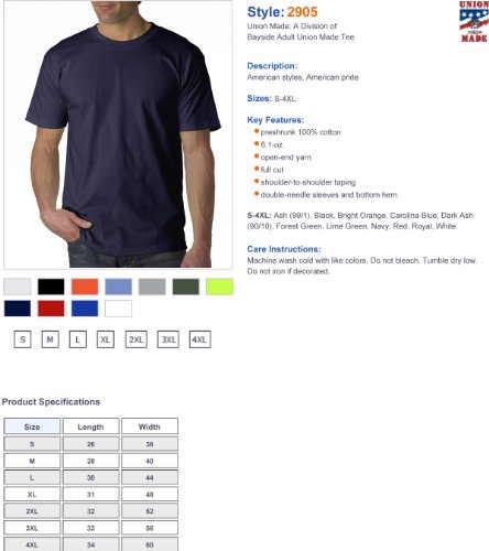 Product Descriptionpreshrunk 100% cotton; 6.1 oz.; open-end yarn; full cut; shoulder-to-shoulder taping; double-needle sleeve and bottom hems; Sizes: S-4XL0