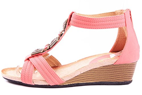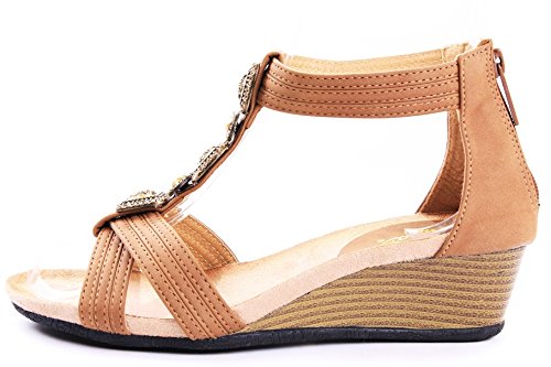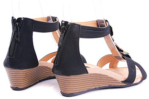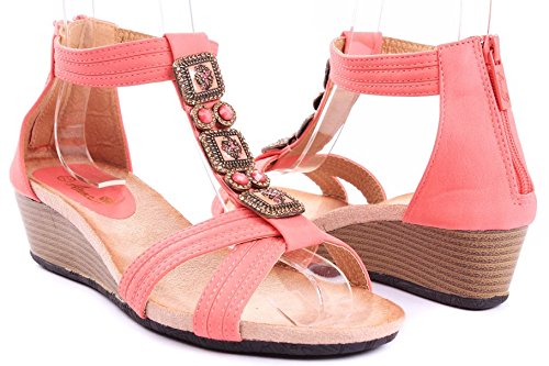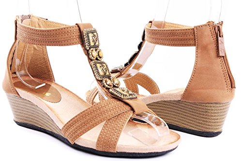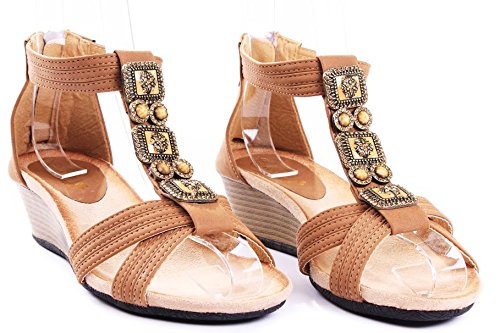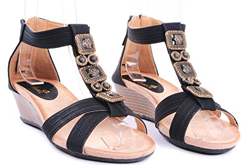Product Description Pair with your favorite jeans or shorts, these jewel rhinestone wedges will make your look effortlessly chic! Features open toe front, strappy construction and gem stones beaded at vamp, stitching details. Finished with rubber sole and padded insole, rear zipper closure for easy on/off. 0