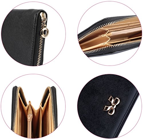 -. Feature : MULTIPLE POCKETS & COMPARTMENTS - Includes 2 slip pockets for bills, 3 centered compartments for cellphone, tickets, receipts, license and etc. / MULTIPLE CARD SLOTS - 8 card slots and a zippered inner pocket for coins. / BEAUTIFUL SYNTHETIC LEATHER CLUTCH WALLET - Front gold-tone bowknot accent. Top zip-around closure. Solid fabric lining. Compact and lightweight. Adds a colorful touch to any outfits. / INDUSTRY LEADING CUSTOMER SUPPORT - You can continue to rely on Electro-Deal to offer the markets most competitive P.R.Ices, paired with industry leading customer support, and all backed by a one year, full manufacturer's warranty on new products or a 90 day limited warranty for refurbished products!
