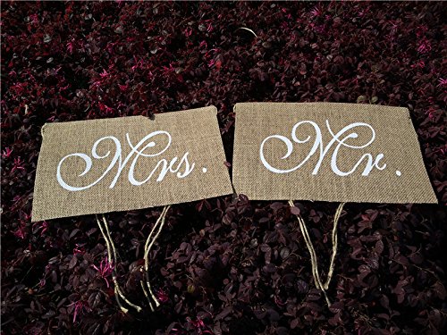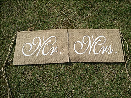 Wedding Chair Signs Mr Mrs Vintage Burlap Bunting Banner for Marriage