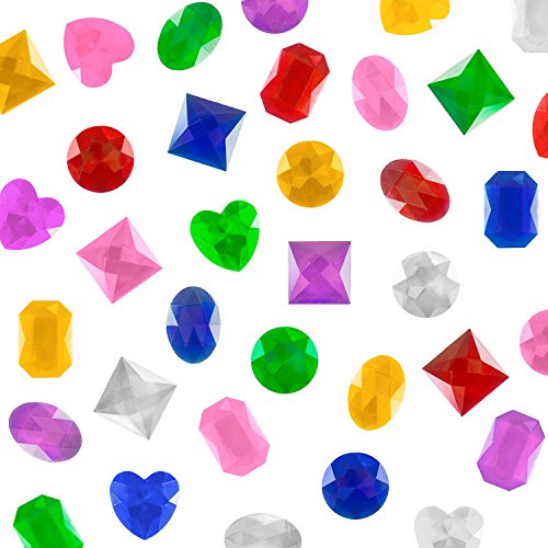 - Comes in a great assortment of colors including red, pink, blue, purple, gold, and more! Pack of 100 assorted jewels and gems. Gems each measure 1" inch in diameter.