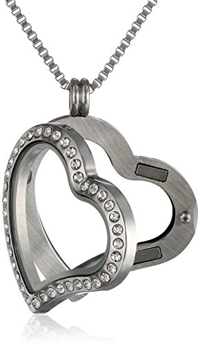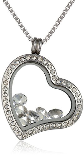 Stainless steel necklace featuring crystal-bordered heart locket filled with interchangeable Swarovski crystal charms