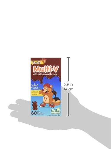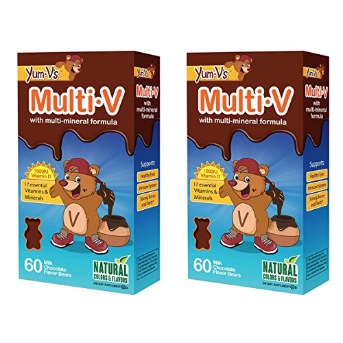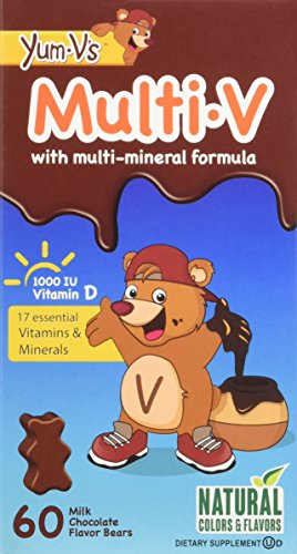 Yum V's Multi-V plus Multi-Mineral Formula Milk Chocolate. Description: All Natural. With Choline to Support Healthy Brain Function. 1000 IU Vitamin D 250% DV. Kosher. Yum-V's Multi-V contains essential vitamins and minerals including 1000 IU of vitamin D. Yum-V's Multi-V has a great milk chocolate taste that kids love. Multi-V + Multi-Mineral Formula Supports: Healthy Eyes. Immune System. Strong Bones and Teeth. Free Of Yeast, wheat (gluten), corn, eggs, artificial colorings and preservatives. Disclaimer: These statements have not been evaluated by the FDA. These products are not intended to diagnose, treat, cure, or prevent any disease.Feature