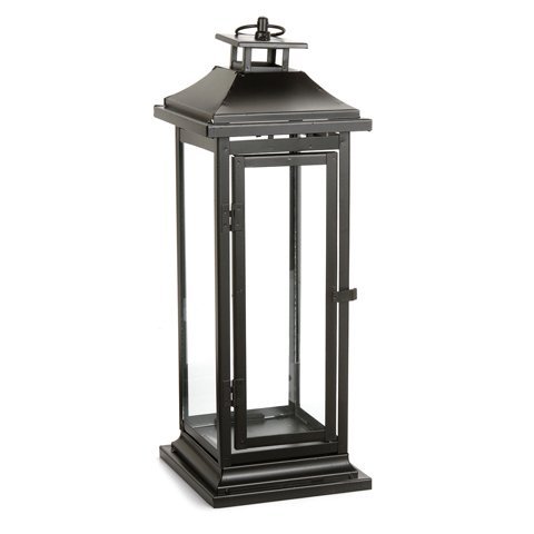 -. Title : Metal Lantern with Glass Sides - 17" Tall x 6" Wide