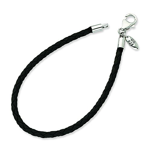 -. Title : Sterling Silver Reflections Black Leather Bead Bracelet - Length Options: 6.25 6.75 7 7.5 7.75 8.25 8.5 9