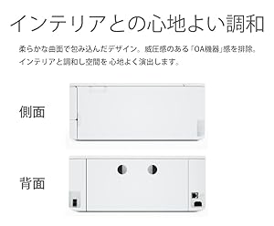 インテリアとの心地よい調和 360°スッキリデザインで、側面・背面から見てもスッキリ。 コンパクトでも前面2段給紙+背面手差し1枚を実現。 トレイの出っ張りもなく、すっきり収納可能。 |
