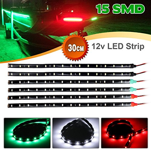 - (Pack of 6) Boat Marine Accent Light LED Lighting Strip RV; a Wonderful LED light strip kit for the bow of your boat, Great lighting alternatives to light up either the interior or the edges around the entire vessel... Port Sidelight -- Red; Starboard Sidelight -- Green; Masthead Light -- White; Stern Light -- White