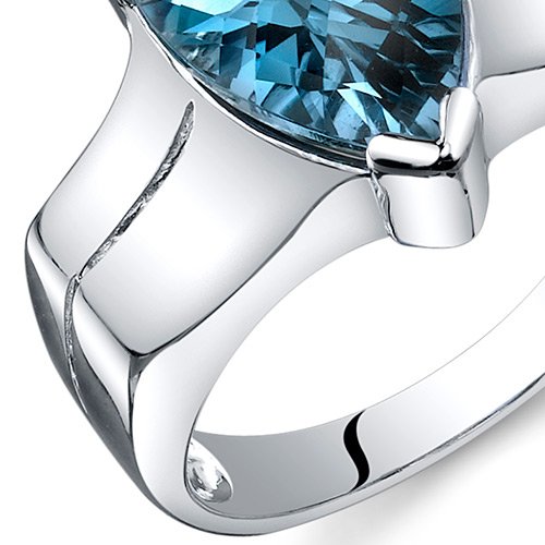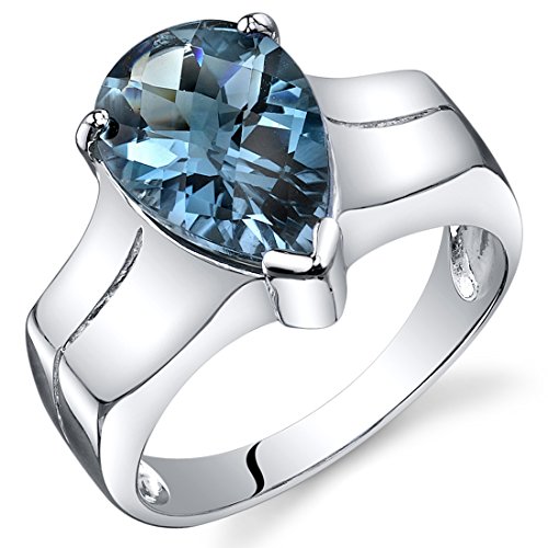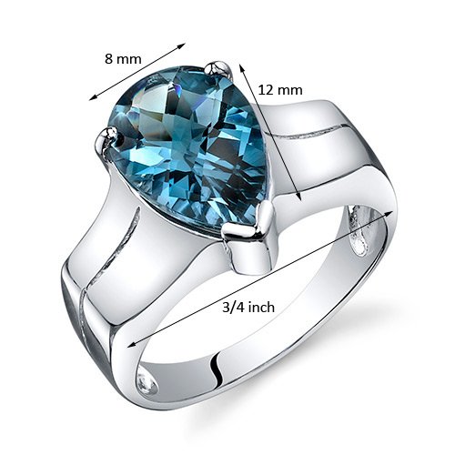 -. Title : London Blue Topaz Ring Sterling Silver Rhodium Nickel Finish Pear Shape 3.25 Carats Sizes 5 to 9