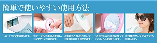 -. Feature : カラー:シャンパンゴールド / セット内容:本体、接続ケーブル、サングラス 取扱説明書(保証書) / サイズ/重量:H218.7mm×W80.75mm×D144.6mm/400g / 照射回数:20,000回 ・電圧:100V~240V 1.5A  ・消費電力:36W / 製造国:中国