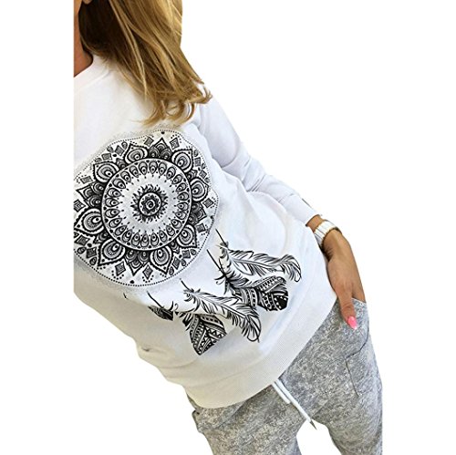 -. Binding : Apparel -. Brand : Bolayu -. Department : womens -. Feature : Material: Cotton blend. / Sleeve Length: Full. / 1PC Women blouse. / Pattern Type: Feather Print. / Please compare the detail sizes with yours before you buy!!! Use similar clothing to compare with the size. -. ProductGroup : Apparel -. ProductTypeName : SHIRT -. Title : Bolayu Women Long Sleeve Feather Printing T-Shirt Tops Blouse
