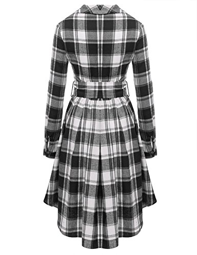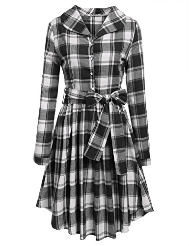 Feature : Material: 65% Cotton and 35% Spandex / Turn down collar,long sleeve, half button pull on closure,vintage style and slim,plaid pattern / Pleated shirt dress, high waist with belt, side zipper closure,shirt dress / With ACEVOG'S quality products, you can look stylish and feel comfortable and elegant while staying active either at work or at play. / PLEASE CHOOSE YOUR SIZE Based On Your Body Size MEASUREMENT or Use similar clothing to compare with the size below "Description"