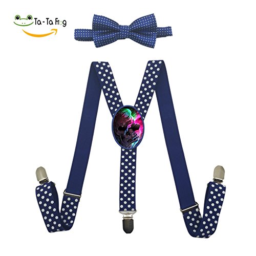 (Sans Bendy's Suspenders)/Accessories/Suspenders Cummerbunds/DIRECT FROM USA/Custom Skull Melt the Rainbow Y-Back Clip Suspender with Bowtie Set Adjustable for Kids
