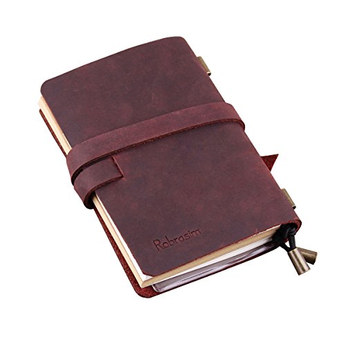 -. Title : Robrasim Vintage Handmade Leather Daily Notepad - Refillable Leather Journal Writing Notebook for Men & Women - Passport Size 13x10cm