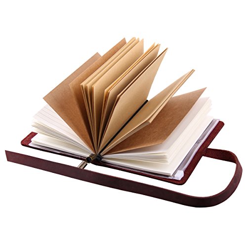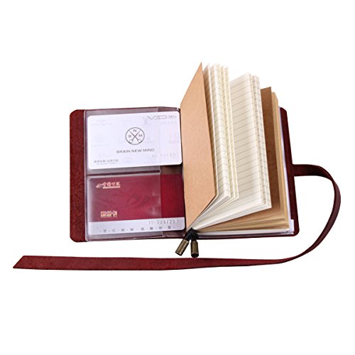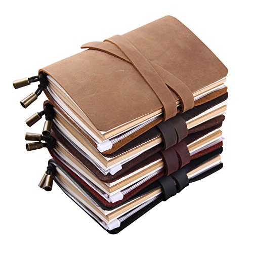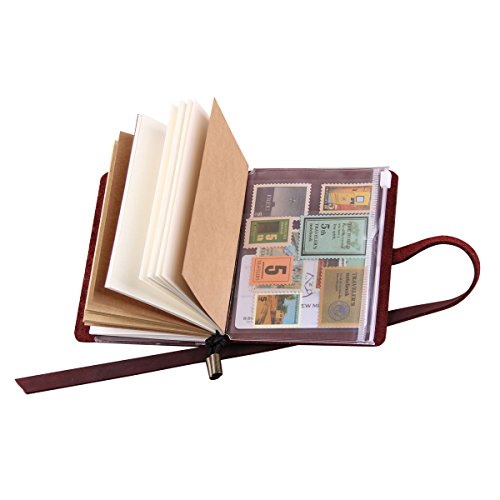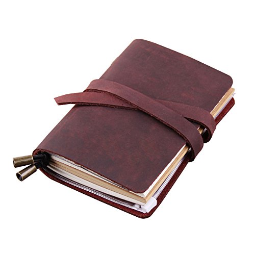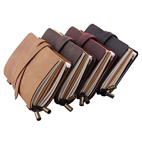 -. Feature : Each notebook made completely by hand without the use of machinery. / The leather covers were made of high quality genuine leather, available in 4 color: Black, Brown, Coffee, Wine. / Includes 3 refills notebooks (1 white + 1 kraft + 1 lined, each refill has 32 pages, 64 sides); and 1 PVC pouch & card holder (1 zipper pouch + 4 card slots). / Journal Size: 13 x 10cm; Refill Size: 12.5 x 9cm / Beautiful gift box packaged, it is a wonderful gift for a traveler or writer.