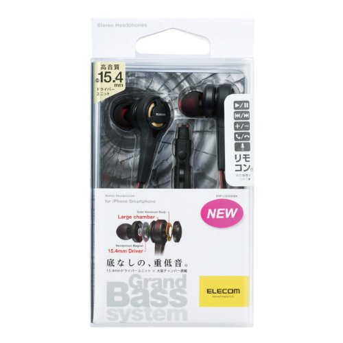 상품명: 에레콤 스테레오 헤드폰(마이크부) iPhone&android대응 바닥이 없음의 중저음을 실현 하는 GrandBass system탑재 모델 15.4mm드라이버 블랙 EHP-CS3580BK