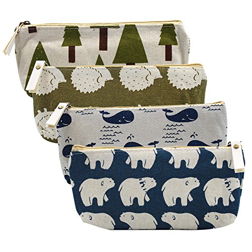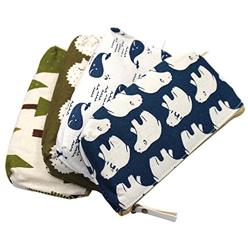 Canvas Pencil Pen Case Holder Stationery Makeup Bags Pouch ,Set of 4 by Erlvery DaMain