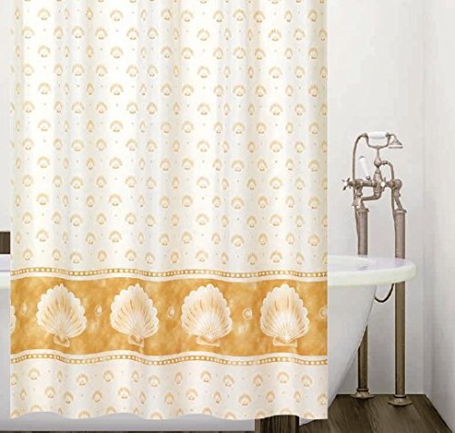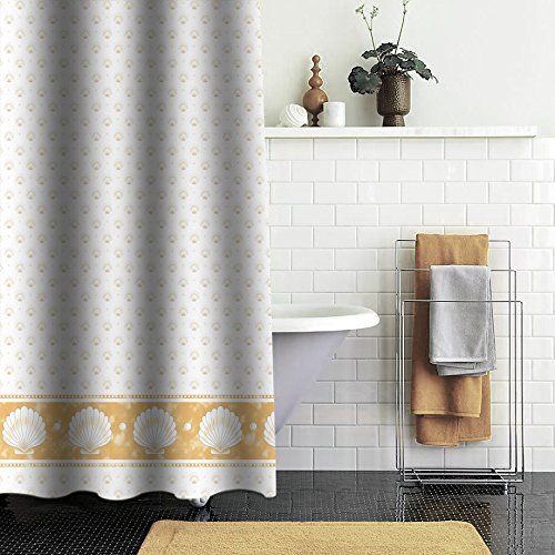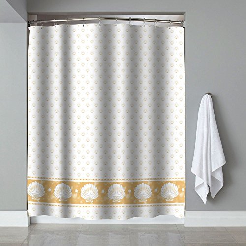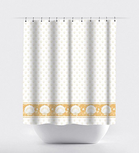 Elegant Shower Curtain - Nautical Mussel Printed Bathroom Accessory with Hooks - 72 x 78 Inches - Brown White