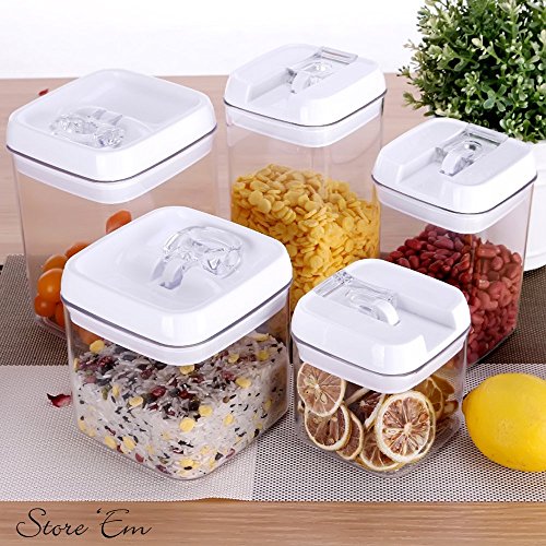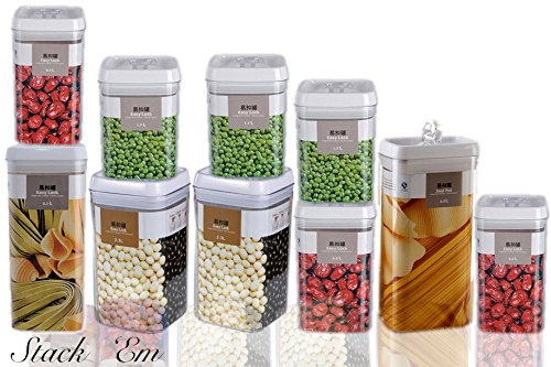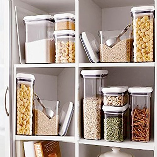 SAVE SPACE in your pantry with stackable/modular airtight plastic kitchen food cannisters for better kitchen organization