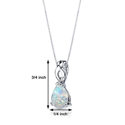 Gemstones: Lab Created White Opal, Pear Cabochon Shape, 10x7mm, shimmering multi-color hues, 1.75 Total Carat Weight. Pendant: 1.50 grams pure Sterling Silver with .925 Stamp. Pendant features exceptional Design, Craftsmanship and Rhodium finishing. Perfect gift for Mothers Day, Birthdays, Valentines Day, Graduation, Christmas or just about any other occasion. Money Back Guarantee. Includes 18 inch Sterling Silver Box Chain and Signature Gift Box. Style SP10952Feature