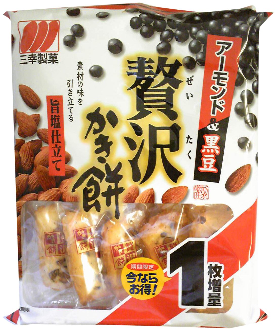 It is a bit of a luxurious rice cake filled with crispy almonds and black soybeans with soft candy.