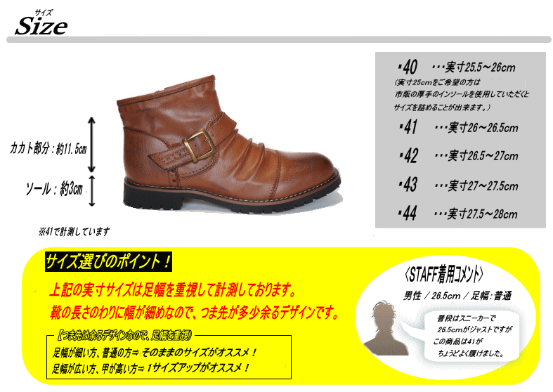 | サイズ | 作り⇒標準 【サイズ選びのポイント!】 足幅が細い方、普通の方⇒そのままのサイズがオススメ!。 足幅が広い方、甲が高い方⇒1サイズアップがオススメ! |