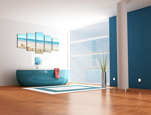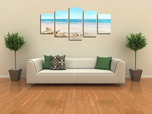 1: Ver.2.4 from Dec/2015 - Update the instruction in Product Description for hang up, bright dark blue without faded. Beautiful beach canvas wall art printed and framed by SZ HD Painting. The artist-grade canvas has strong sense of texture and full of artistic touch, reflects your noble temperament and taste. This canvas picture dimensions: 32"x60" overall by 5 piece = 80x150cm overall by 5 panels.