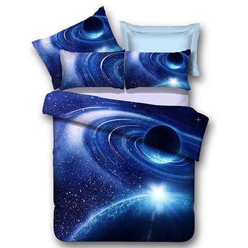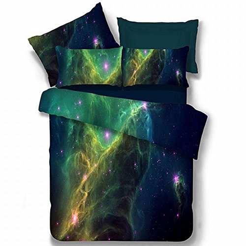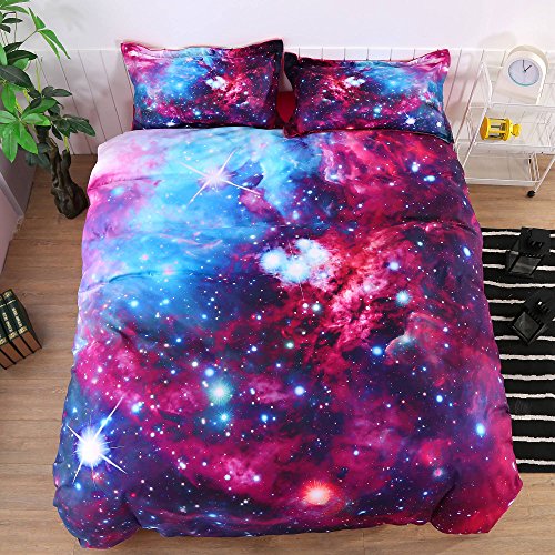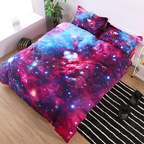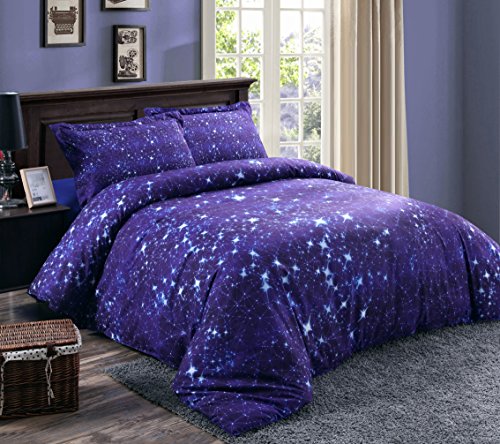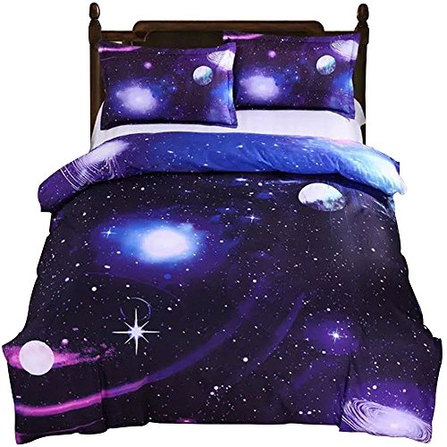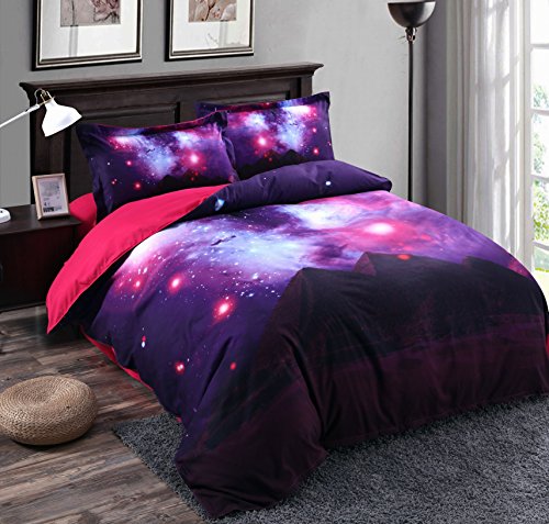 FEATURES & PATTERNS: 3D Purple Blue Galaxy Bedding, Luxury Beautiful King Size Quilt Cover Sheets Set