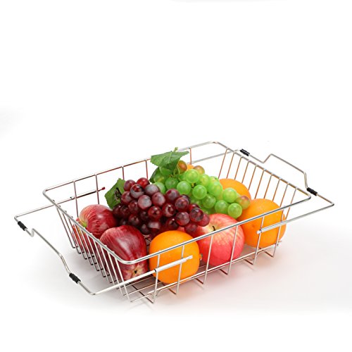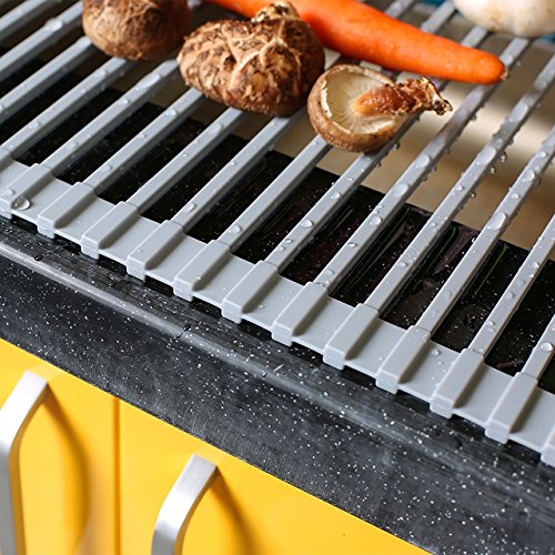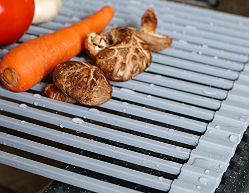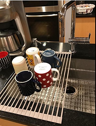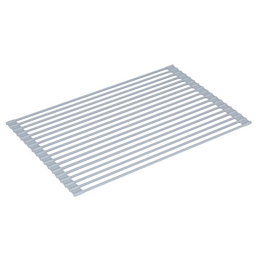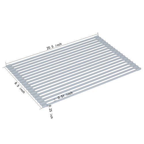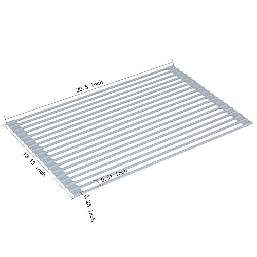 Silicone Over the Sink Multipurpose Roll-Up Dish Drying Rack Trivet and Cooling Rack, Stainless Steel, GEYUEYA Home (Square Pipe)