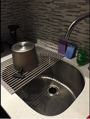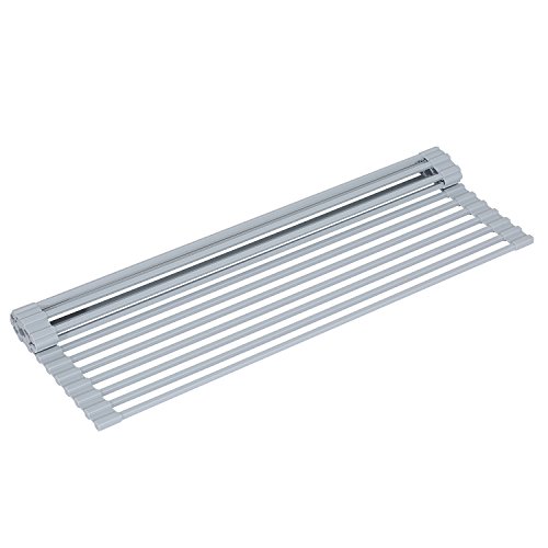 Silicone Over the Sink Multipurpose Roll-Up Dish Drying Rack Trivet and Cooling Rack, Stainless Steel, GEYUEYA Home (Round Pipe)