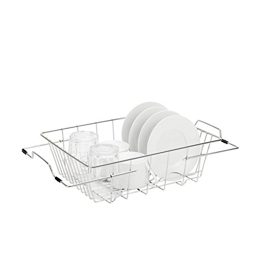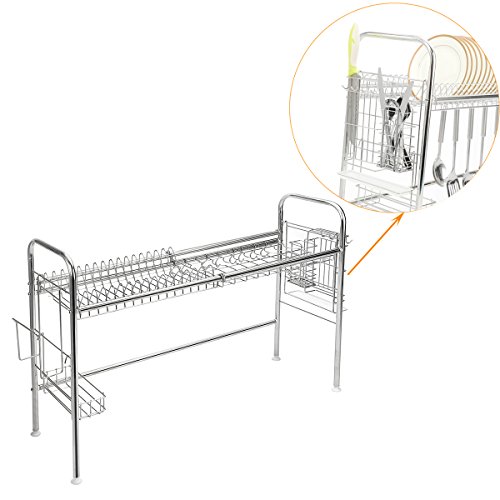 1-Tier Sink Dish Rack Drainer Drying Rack Dish Drainer, Stainless Steel, GEYUEYA Home