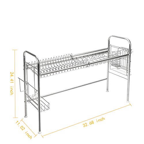 2-Tier Dish Drying Rack Dish Drainer Kitchen Storage Organization, Stainless Steel, GEYUEYA Home