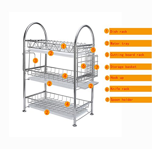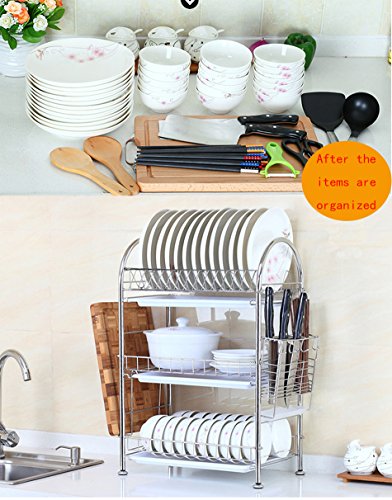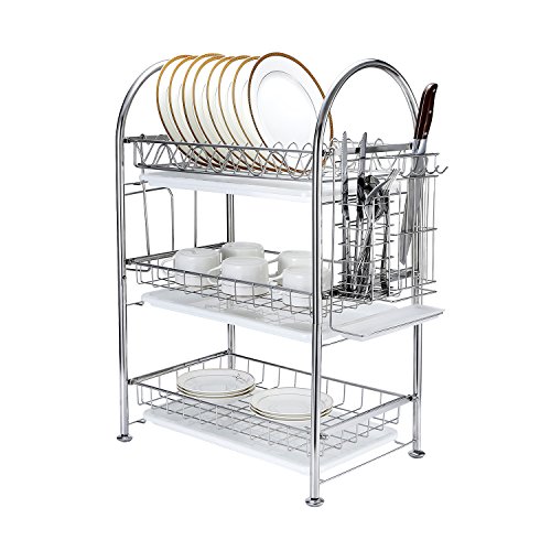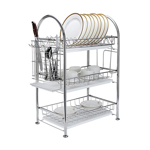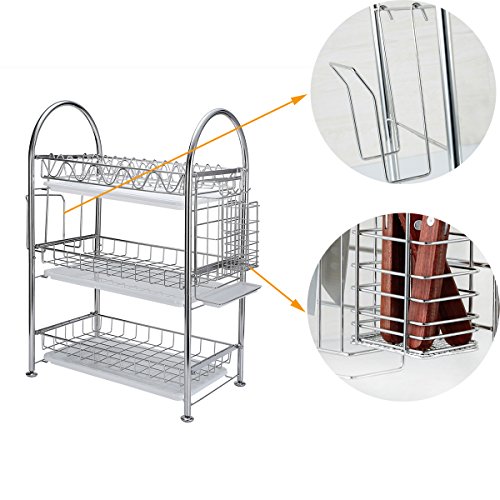 3-Tier Dish Drying Rack Dish Drainer Kitchen Storage Organization Shlef, Stainless Steel, GEYUEYA Home
