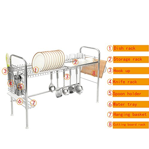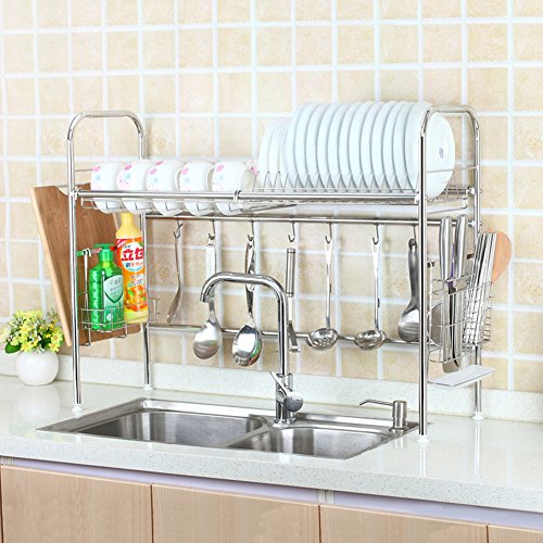 GEYUEYA Home Dish Drying Rack Sink Dish Rack Dish Drainer, Stainless Steel