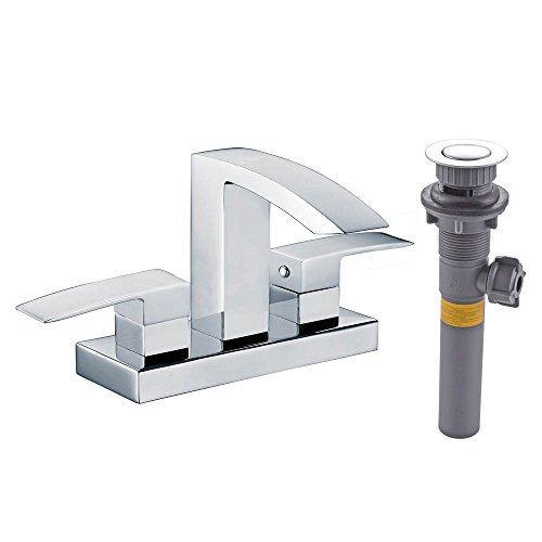 KES LEAD-FREE BRASS Two Handle Bathroom Waterfall Faucet with Drain Assembly Lavatory Vanity Sink Faucet 4-Inch Centerset, Polished Chrome, L4101LF