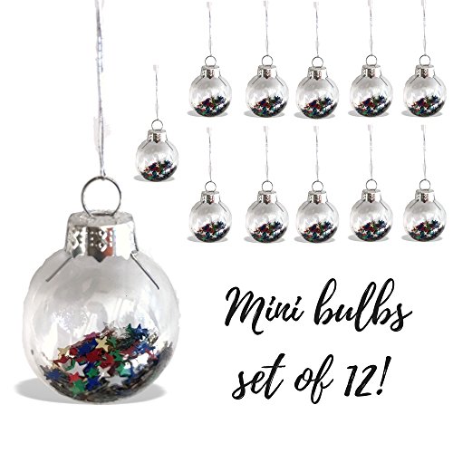 Mini Glass Christmas Ornaments - Set of 12 Mini 1-INCH Balls Filled With Colorful Star Confetti – Small Christmas Tree Decorations