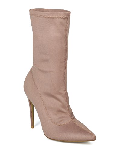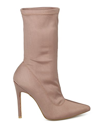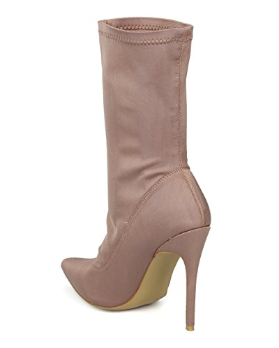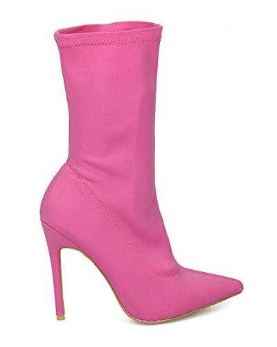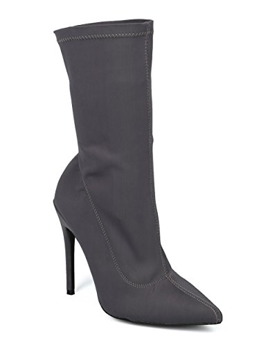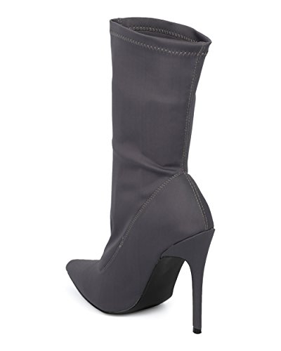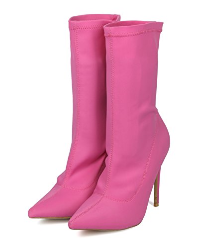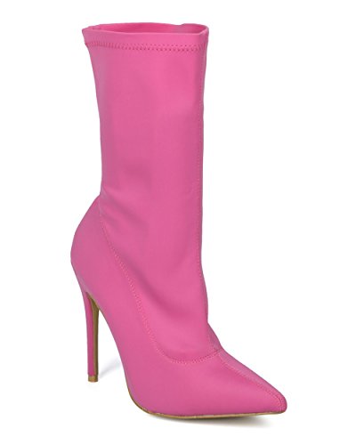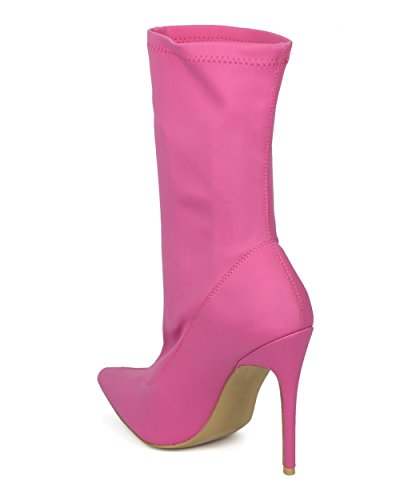 Women Stretch Fabric Mid-Calf Pointy Toe Stiletto Sock Boot - HF44 By Top Show Collection