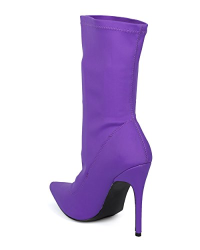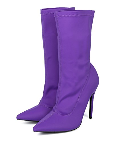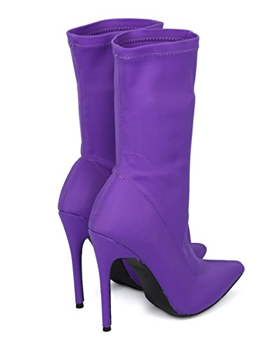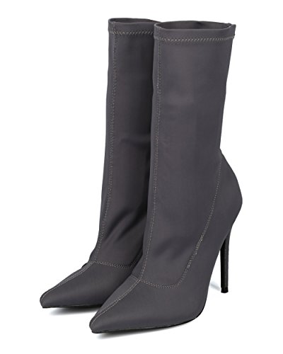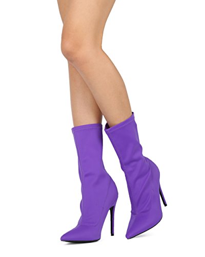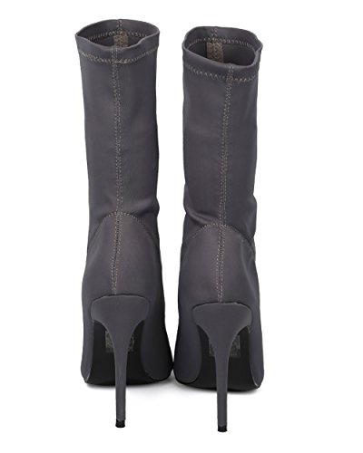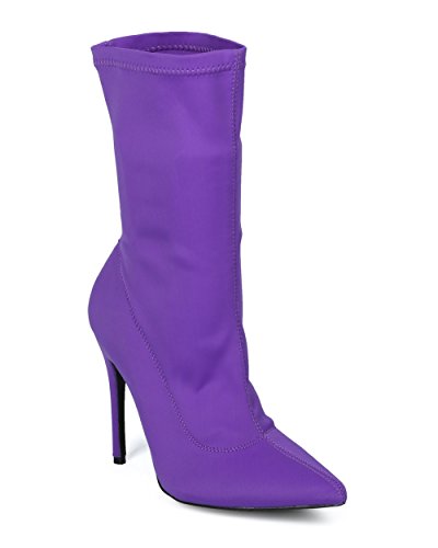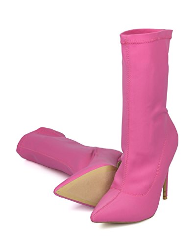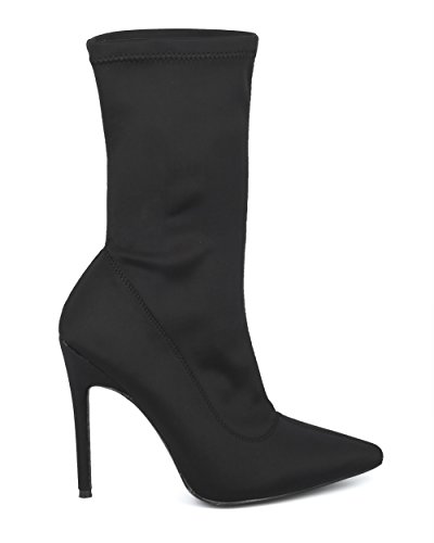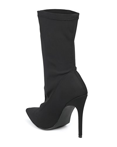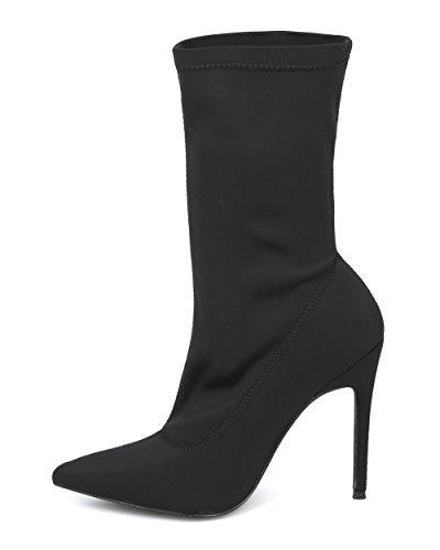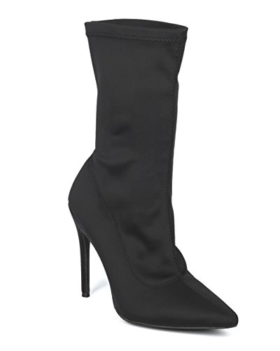 Product Description These trendy sock boots are made with a stretch fabric upper, pointy toe and stitch accents. Also made with a single sole, stiletto heel and easy to pull up design. 0
