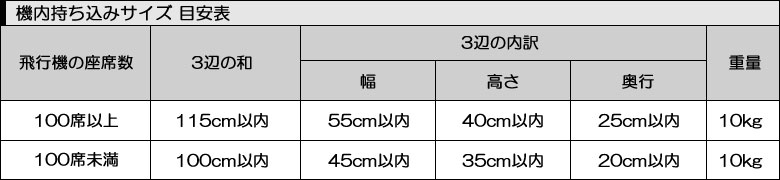 ※ The size that you can bring in the aircraft varies depending on the model of the airline or airplane. For details, please contact each airline directly.