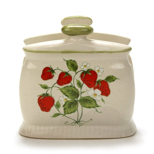 -. Feature : Napkin Holder by Japan, Stoneware, Strawberries, Napkin Holder by Japan, Circa: Unknown, Used to hold napkins., Red strawberries, green leaves, cream colored background with green trim., Size: 4-3/8" High, 4-3/8" Wide, 2" Deep