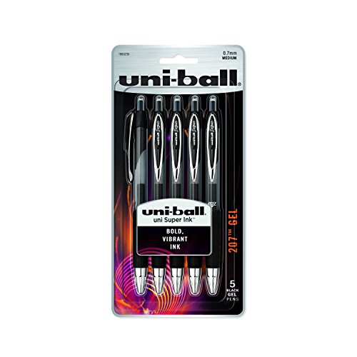-. Feature : Make a striking statement with thick, vibrant gel ink in intensely bold colors / Premium grip provides Superior writing comfort and control / Features uni Super ink which protects against water, fading and fraud / Refillable design with a stylish translucent ink window and attractive metal accents / Includes: 5 black gel pens, 0.7mm medium point