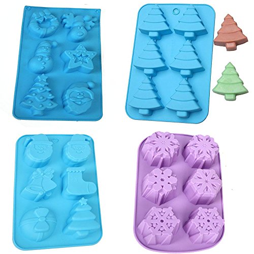 (Set of 4)Christmas Serise Multipurpose Silicone Mold,Christmas tree, Santa Claus, snowflake,Socks for Sugarcraft,Chocolate,Fondant,Resin,Polymer Clay,Soap