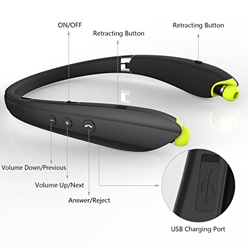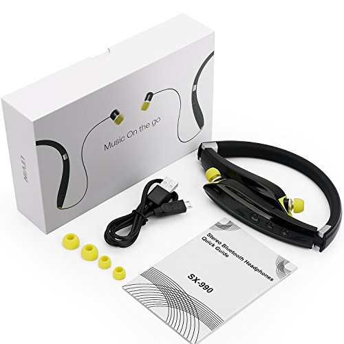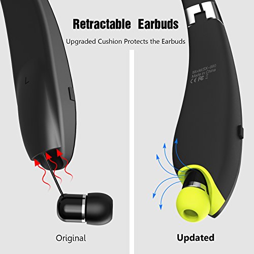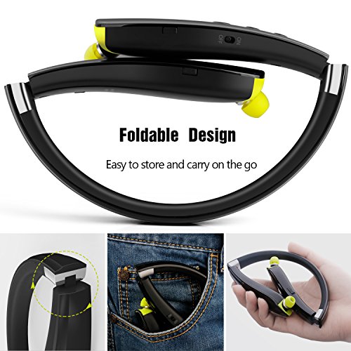 Levin Upgraded Bluetooth Headphones Bluetooth 4.1 Wireless Headphone with Foldable Neckband Design Retractable Earbuds for iPhone, Samsung Galaxy Series, Android and Other Bluetooth-Enabled Devices