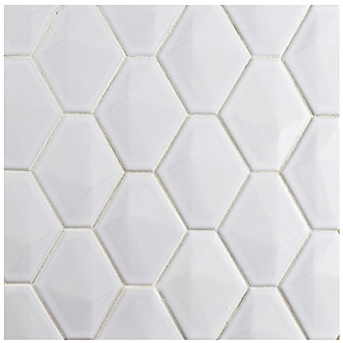 SomerTile FDXPRGWH Fractal Porcelain Mosaic Wall Tile, 10.5" x 11", White