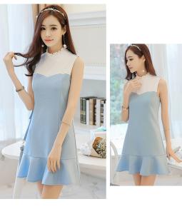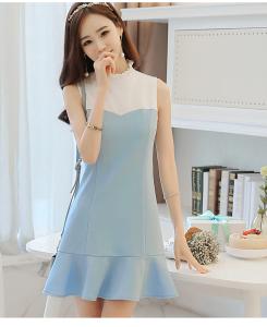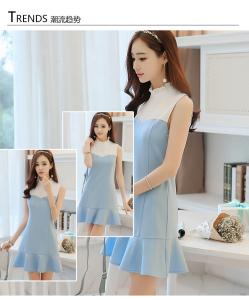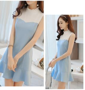 ハーフハイネック フリル ノースリーブ ミニ丈ワンピース 爽やか ミニ丈ワンピース 切り替え Aライン プチプラ