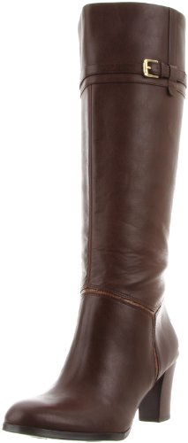 Amazon.com Make a stunning approach in this knee-high from Naturalizer. The Larissa features a synthetic upper with a strap-and-buckle detail at the topline. Beneath, a manmade sole grips, while the block heel delivers that leggy look you love. 0