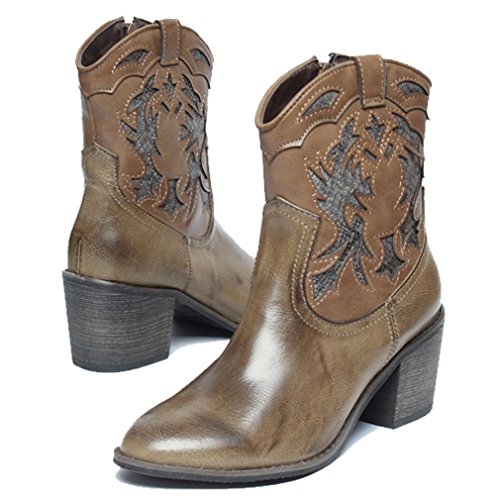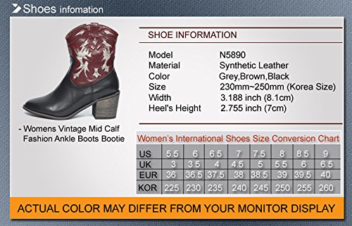 Product DescriptionWomen's Vintage Western Cowboy Mid Calf Boots bootie with comfort footbed and Side Zipper closure for easy on/off.0