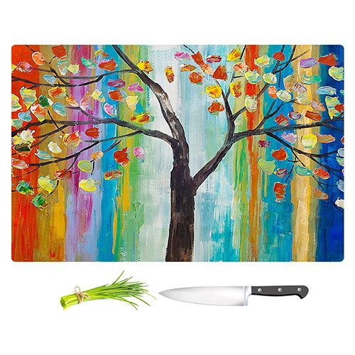 DiaNoche Designs CB-LamFukTimColorTree2 Lam Tim-Color Tree Unique Kitchen Slicing Dicing Bar Artistic Decorative Cutting Boards from, Large 15" x 11"