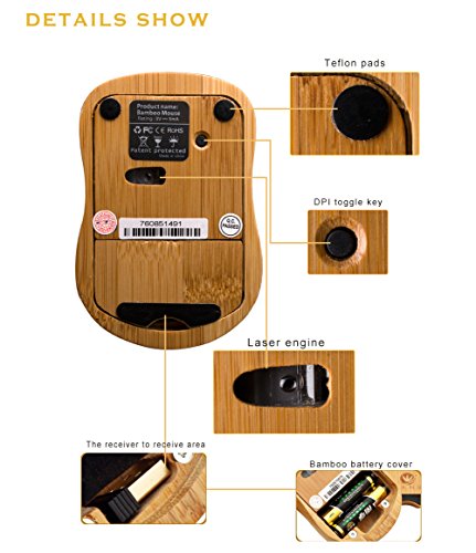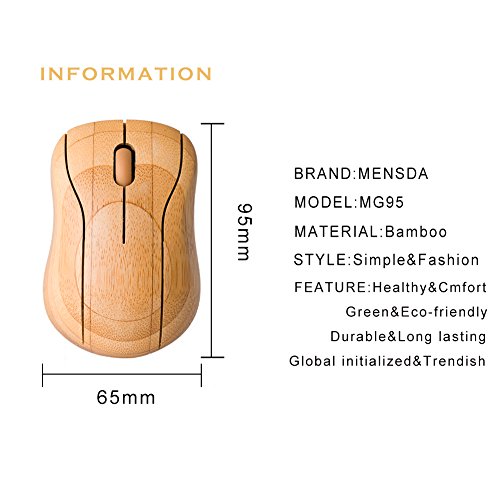 MENSDA Stylish Portable Fashionable Natural Bamboo Wooden Mouse, Wireless Mouse